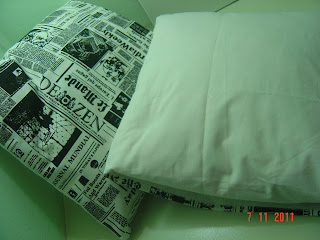 Fiz a barrinha nos dois tecidos usei um branco para o fundo e outro estampado, dobrei para passar a costura em toda a volta da capa. A capa é tipo envelope, como a fronha, tem um tecido que prende a almofada dentro, apanhei um pouco na hora, costurei ao contrario e tive que refazer.