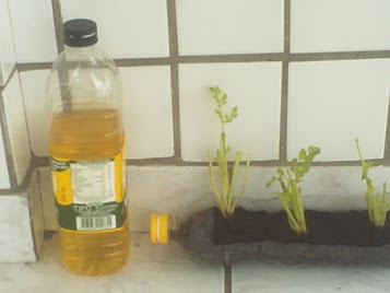 A ideia é usar garrafas do dia a dia, tipo a de óleo de cozinha ou de refrigerante que normalmente temos em casa.