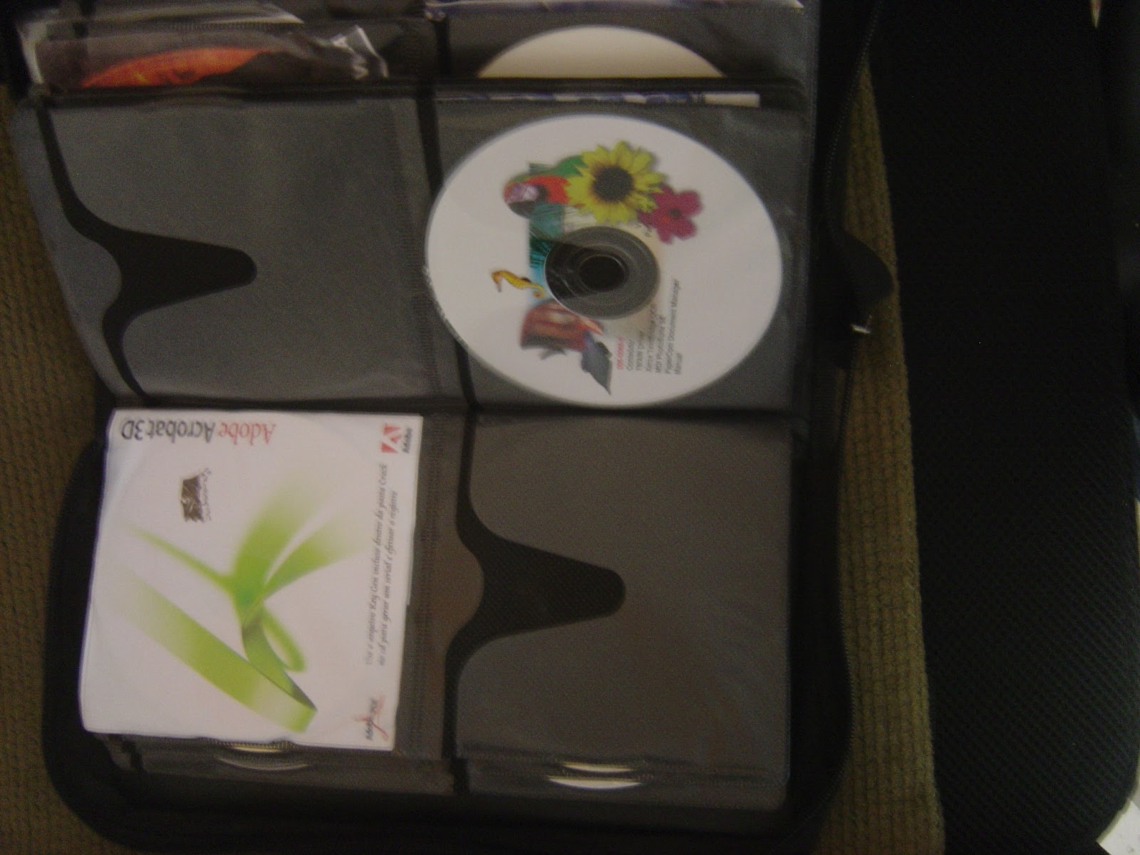 Eu uso os portas CDs da vida, colocando o CD e a capinha, tenho um ´só para programas e outro para dvds de fotos e etc.