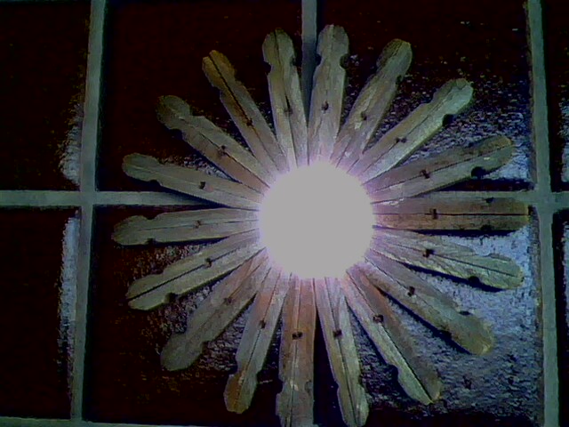 Desmonte os pregadores e cole ao contrario, vá unindo uns aos outros até formar um circulo, deixe secar bem e passe o spray, no meio do circulo cole o espelho ou algo que lhe chame a atenção.